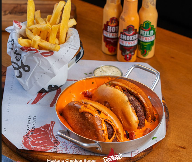 Angus burger (150g) grelhado, acompanhado de molho cheddar cremoso e cebola caramelizada no pão brioche