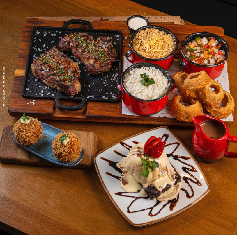 Pedido em 3 tempos, do começo ao doce final! Entrada: Motown Salad ou Bolinho de costela. Prato Principal: à escolha. Sobremesa: Banoffee, brownie ou pudim.