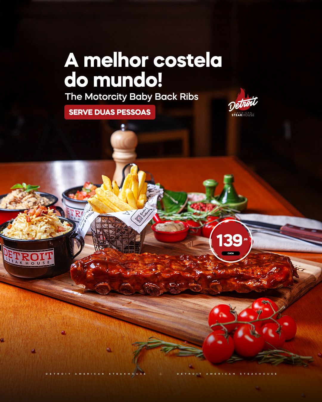Pedido em 3 tempos, do começo ao doce final! Entrada: Motown Salad ou Bolinho de costela. Prato Principal: à escolha. Sobremesa: Banoffee, brownie ou pudim.